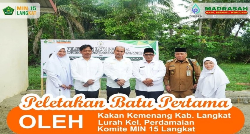 Peletakan batu pertama dilakukan oleh Kakan Kemenag Lagkat, Lurah Perdamaian, Komite MIN 15 langat, didampingi oleh Kapala Madrasah, tokoh masyarakat, serta para guru dan orang tua siswa. Dalam sambutannya, Kepala MIN 15 Langkat menyampaikan rasa syukur atas terwujudnya pembangunan ini.